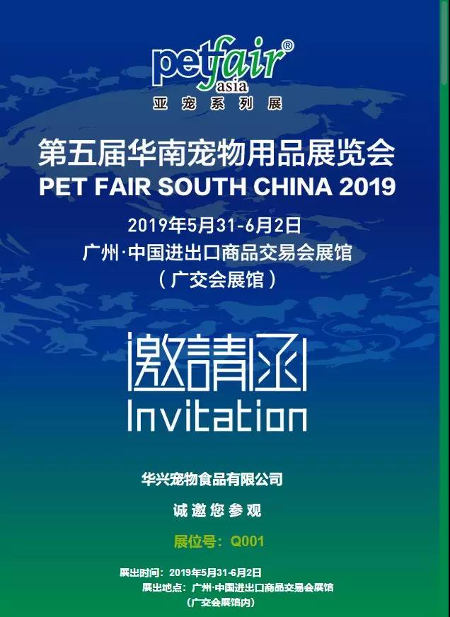 華興寵物食品有限公司誠(chéng)摯邀請(qǐng)您共赴寵物行業(yè)盛宴,我們?cè)谡刮籕001等你哦!